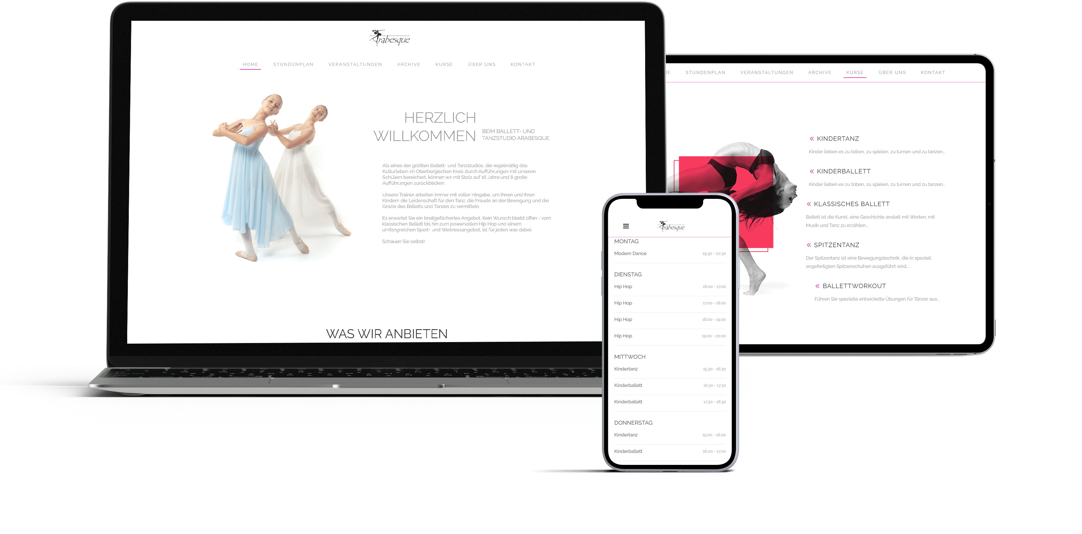 Dieser Kunde wird von uns Dauerhaft in seiner Außendarstellung unterstützt. Die besonderheit bei der Seite lag darin, dass Events und Stundenplan Einträge vom Kunden durchgenommen werden sollten. Durch eine Vielzahl von Events die durch und mit dem Studio Arabesque entstehen, werden ständig verschiedenste Aufträge erzielt und man hat ständig mit neuen Herausforderungen zu kämpfen.